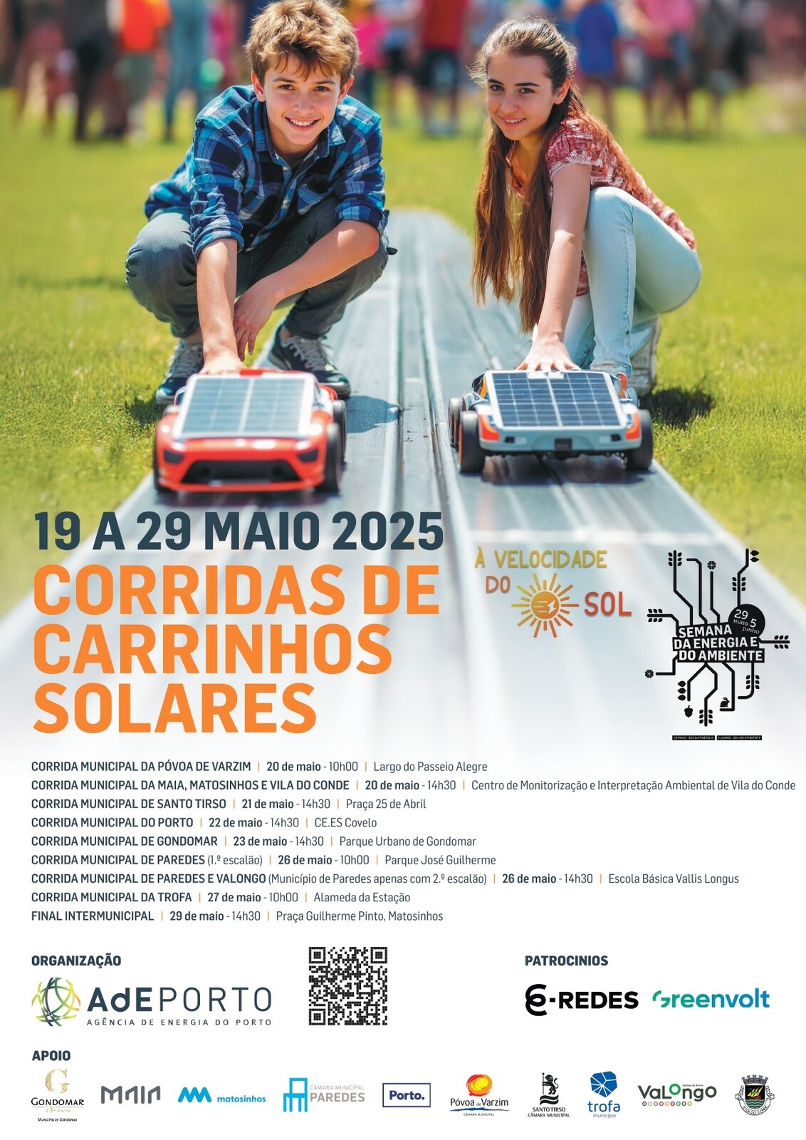 As corridas municipais decorrem entre os dias 20 e 27 de maio, culminando com a final intermunicipal a 29 de maio, em Matosinhos, no âmbito da Semana da Energia e do Ambiente (SEA). Este ano, a edição envolve mais de 450 alunos, 60 professores e 60 escolas, numa celebração da inovação e do espírito sustentável.