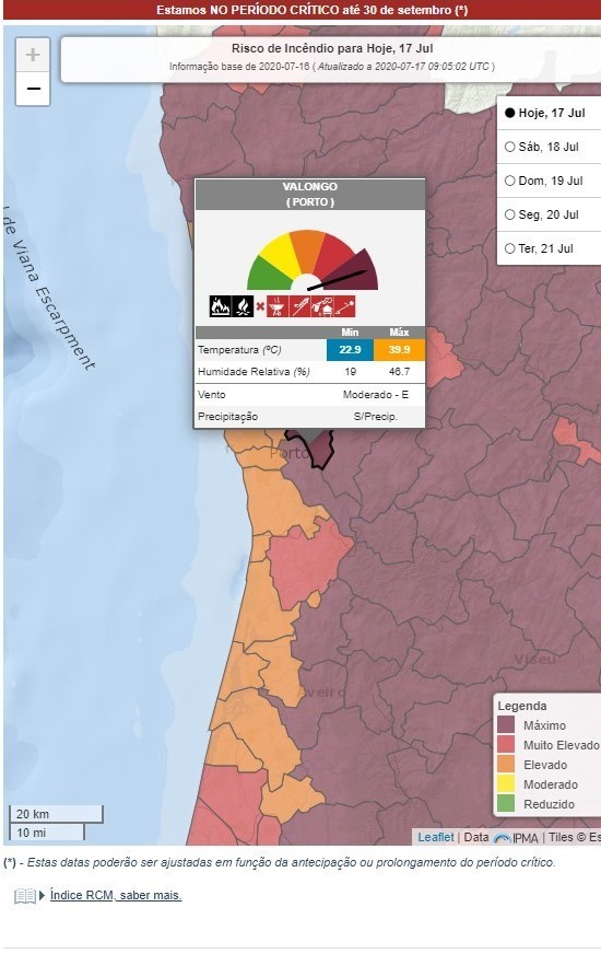 Esta declaração decorre ainda da necessidade de adotar medidas preventivas e especiais de reação face ao risco de incêndio máximo e muito elevado previsto pelo IPMA, pelo menos até segunda-feira, em mais de metade dos concelhos do continente devido ao tempo quente.