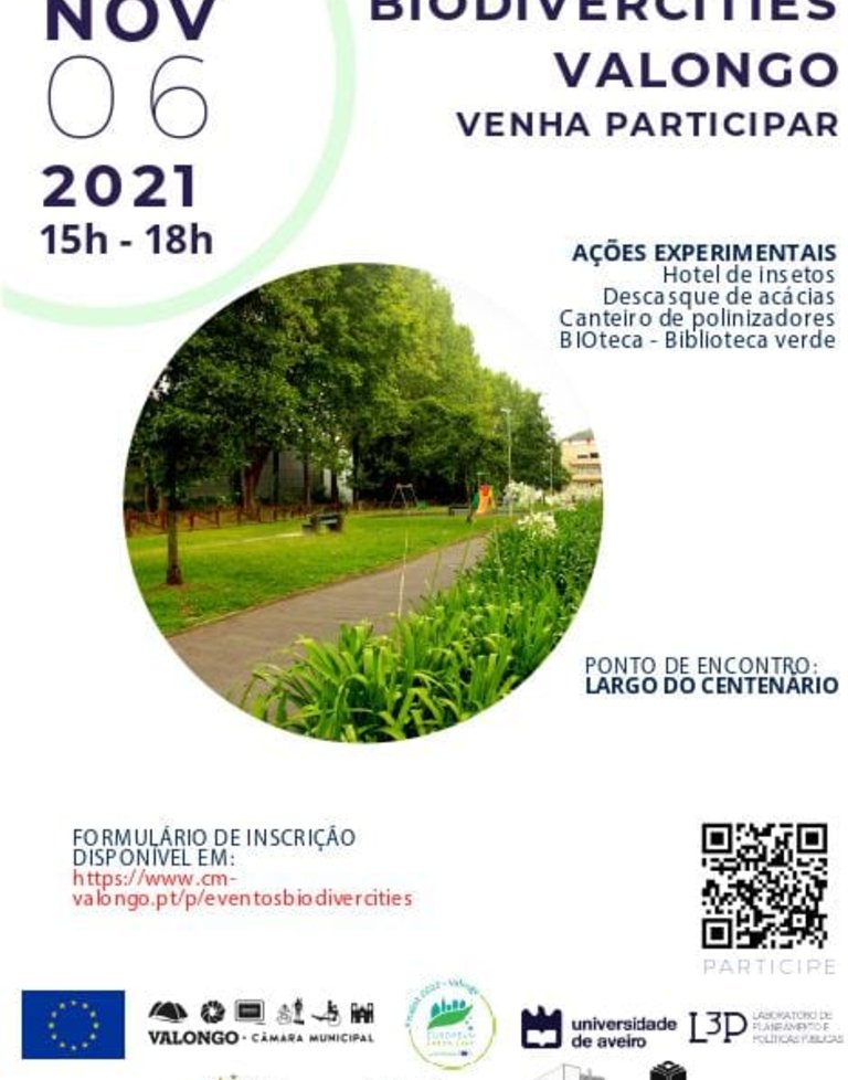 Neste sentido, gostaríamos de contar com a V/ presença na implementação desta etapa do projeto BiodiverCities para a preservação e promoção da biodiversidade urbana. A ação experimental irá realizar-se no dia 6 de novembro 2021 entre as 15h e as 18h no parque público das traseiras da Rua Dr. João Alves do Vale, em Valongo. As atividades programadas serão desenvolvidas de forma colaborativa pelos cidadãos, especialistas convidados e técnicos municipais da CMV e consistem no seguinte: