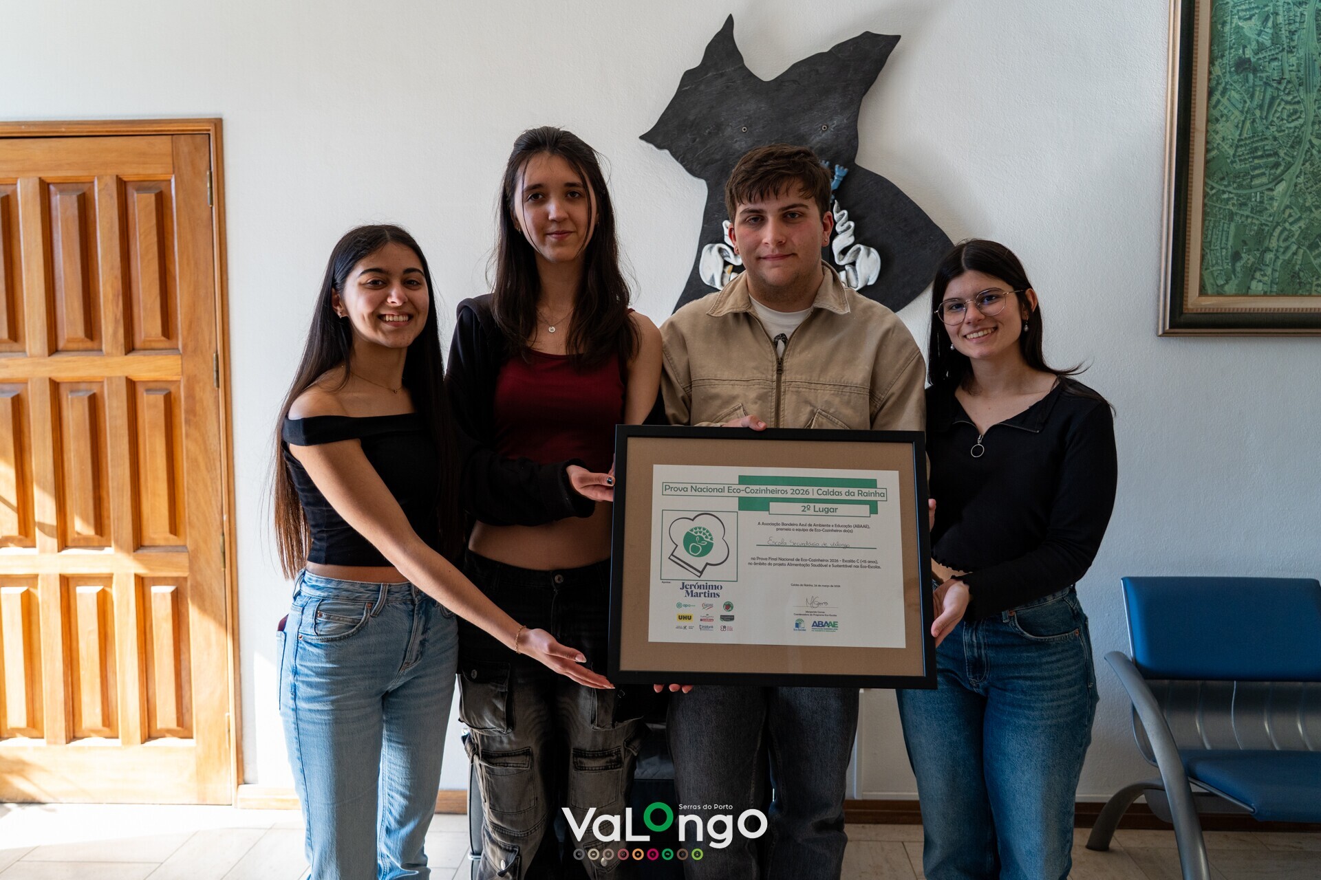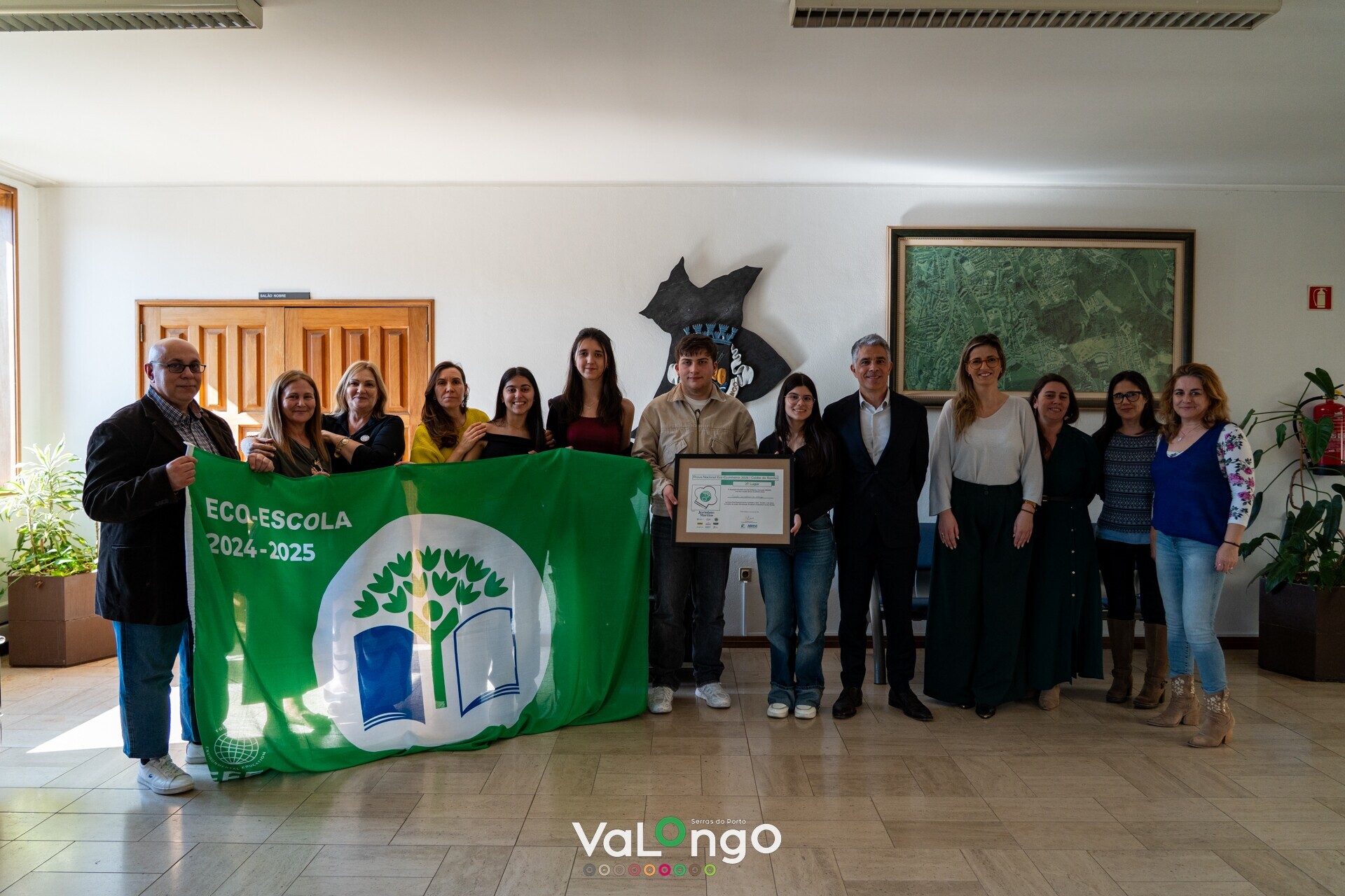 Os alunos e professores da Escola Secundária de Valongo que participaram no desafio Eco Cozinheiros 2025 2026 foram recebidos nos Paços do Concelho pelo Presidente da Câmara Municipal de Valongo, Paulo Esteves Ferreira, e pela Vereadora do Ambiente, Cláudia Lima. Durante a receção, os autarcas felicitaram a equipa pelo excelente desempenho e destacaram a importância da participação neste tipo de iniciativas, que consideram um modelo inspirador para a promoção de práticas alimentares responsáveis e de sustentabilidade no concelho.