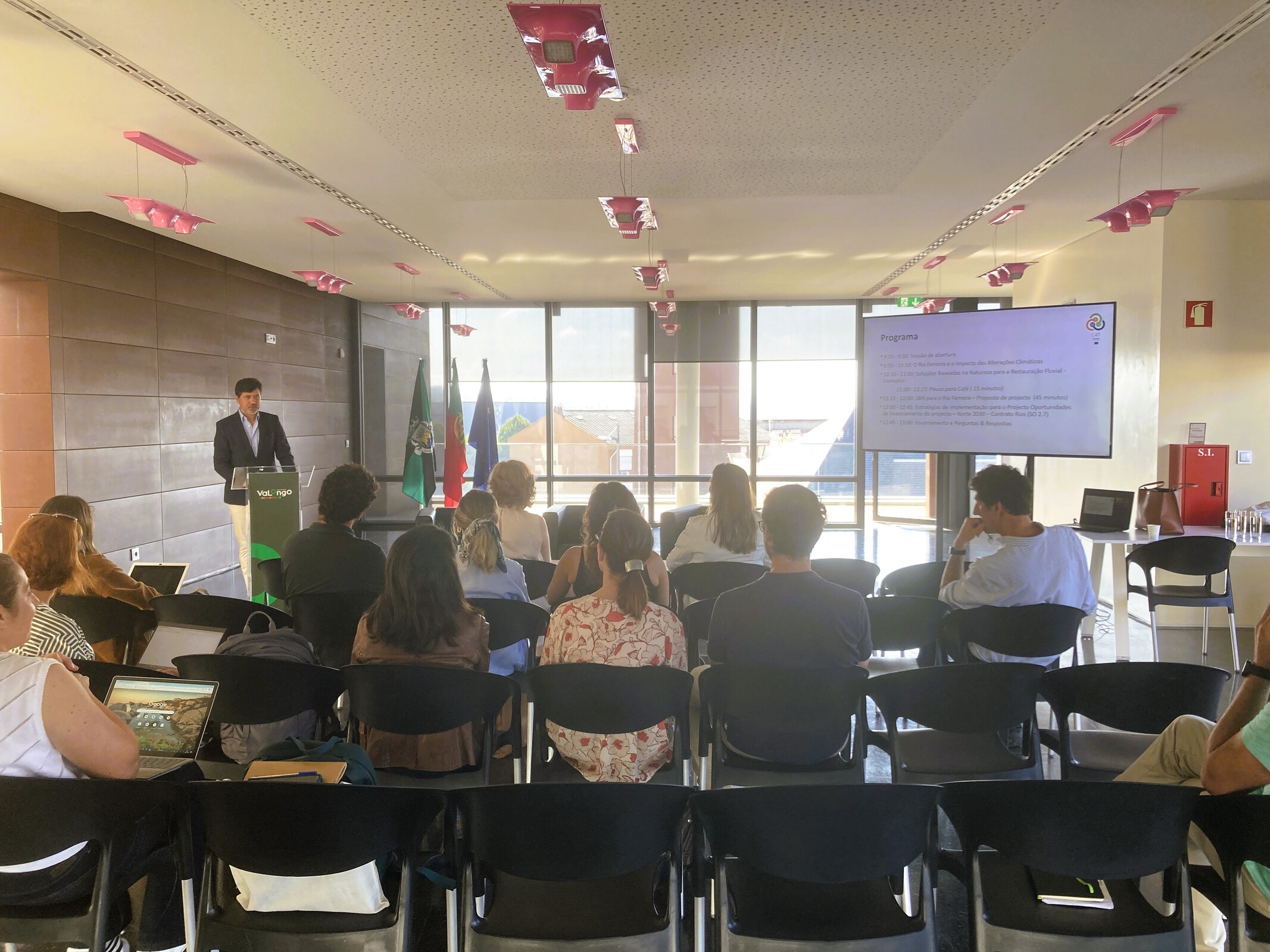 O workshop iniciou-se com a intervenção do representante do Município de Valongo e Diretor do Departamento de Planeamento, Gestão Urbanística e Ambiente do Município, Dr. António Ramalho, seguindo-se uma apresentação sobre a iniciativa C4T pelo representante da DG REGIO, Luis Galiano Bastarrica e uma intervenção pela Dra. Inês Andrade da Agência Portuguesa do Ambiente, sobre os cursos de água em Portugal.